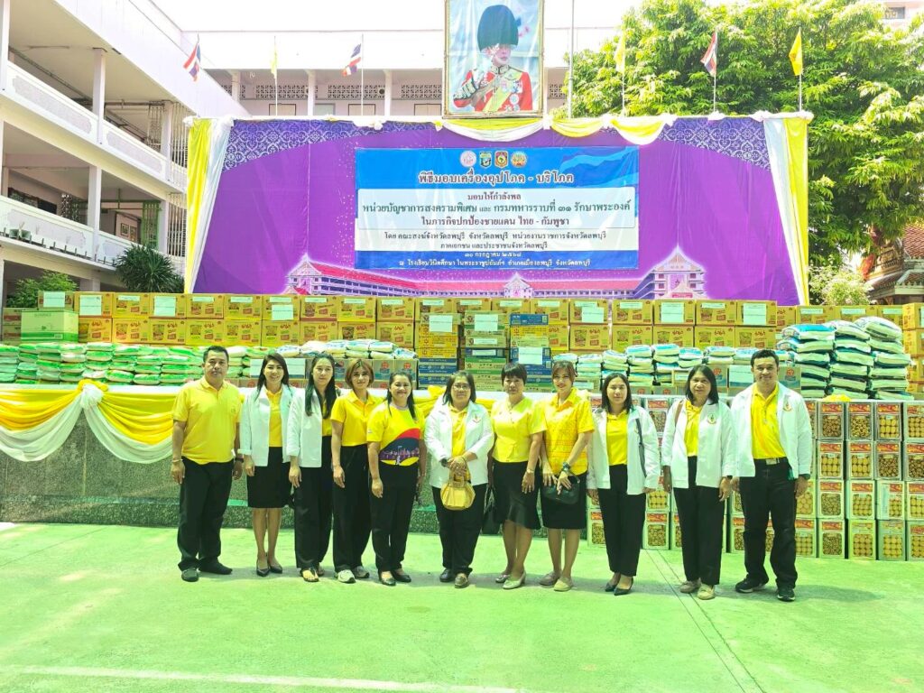 วันที่ 30 กรกฎาคม 2568 สำนักงานศึกษาธิการจังหวัดลพบุรี บริจาคสิ่งของอุปโภค บริโภค ร่วมกับจังหวัดลพบุรี คณะสงฆ์จังหวัดลพบุรี และทุกภาคส่วน มอบสิ่งของเครื่องอุปโภค บริโภค ให้กำลังหน่วยทหารเพื่อส่งต่อกำลังใจจากแนวหลังสู่แนวหน้าที่ไปปฏิบัติภารกิจชายแดนไทย กัมพูชา พระธรรมวชิรสุนทร เจ้าคณะจังหวัดลพบุรี เจ้าอาวาสวัดกวิศราราม ราชวรวิหาร เป็นประธานฝ่ายสงฆ์ นายอำพล อังคภากรณ์กุล ผู้ว่าราชการจังหวัดลพบุรี ได้เป็นประธานฝ่ายฆราวาส ในการทำพิธีมอบสิ่งของ ณ อาคารอเนกประสงค์โรงเรียนวินิตศึกษา ในพระราชูปถัมภ์ฯ อำเภอเมืองลพบุรี