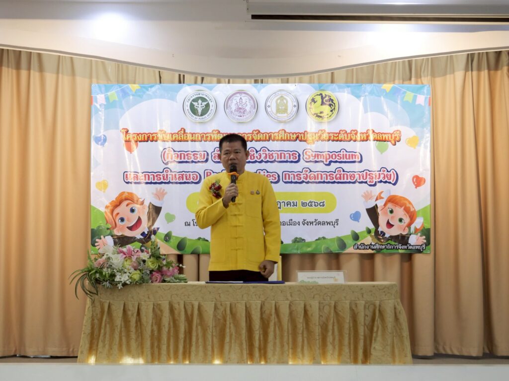 วันที่ 29 กรกฎาคม 2568 สำนักงานศึกษาธิการจังหวัดลพบุรี จัดโครงการขับเคลื่อนการพัฒนาการจัดการศึกษาปฐมวัยระดับจังหวัดลพบุรี โดยมี ว่าที่ร้อยตรี ทรงพล แป้นแก้ว รองผู้ว่าราชการจังหวัดลพบุรี ประธานเปิดงานดังกล่าว และ นางเขมกร นิ่มดิษฐ์ รองศึกษาธิการ รักษาการในตำแหน่ง ศึกษาธิการจังหวัดลพบุรี กล่าวรายงาน ณโรงแรมลพบุรีอินน์ รีสอร์ท