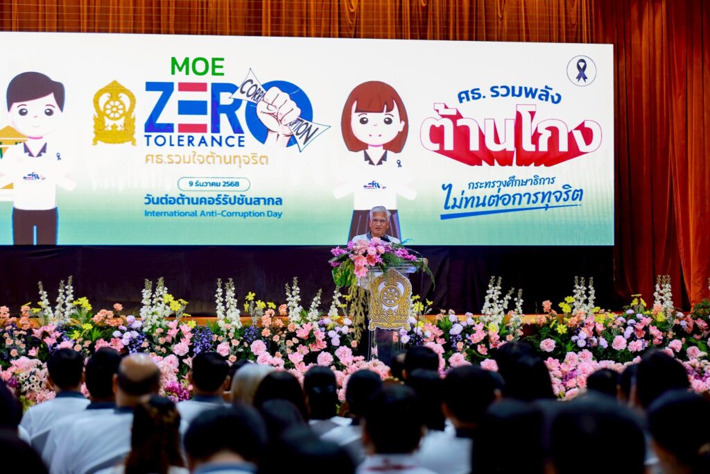 วันอังคารที่ 9 ธันวาคม 2568 นายวัชรพงศ์ พิพัฒน์สุริยวงศ์ ศึกษาธิการจังหวัดลพบุรี ร่วมกิจกรรมงานวันต่อต้านการทุจริต ภายใต้แนวคิด “กระทรวงศึกษาธิการไม่ทนต่อการทุจริต” (MOE Zero Tolerance) ประจำปีงบประมาณ พ.ศ. 2569 ณ หอประชุมคุรุสภา กระทรวงศึกษาธิการ โดยมี นายสุเทพ แก่งสันเทียะ ปลัดกระทรวงศึกษาธิการ ประธานพิธีฯ