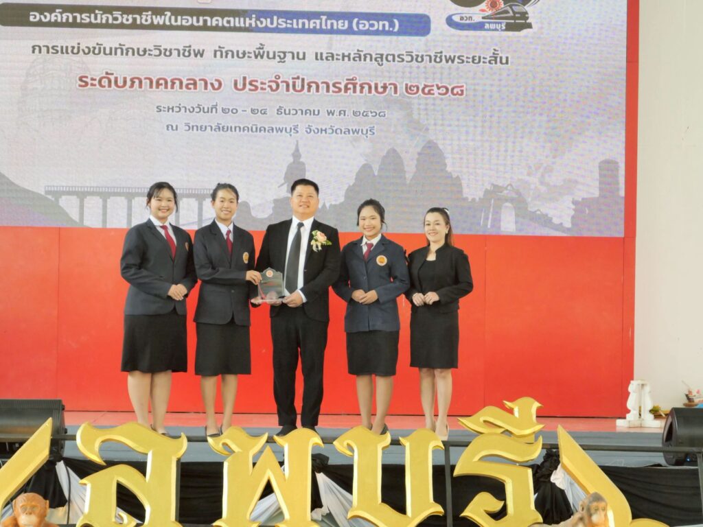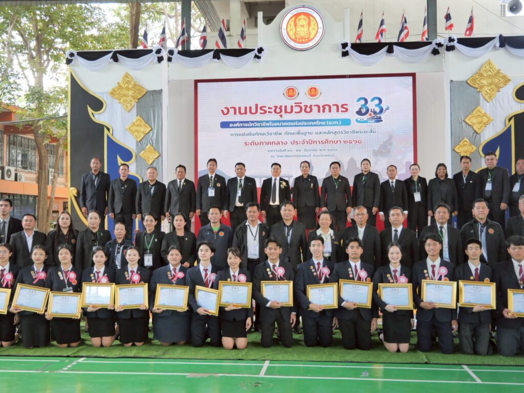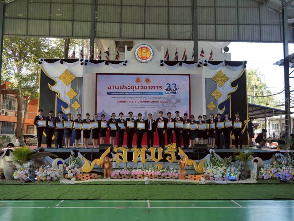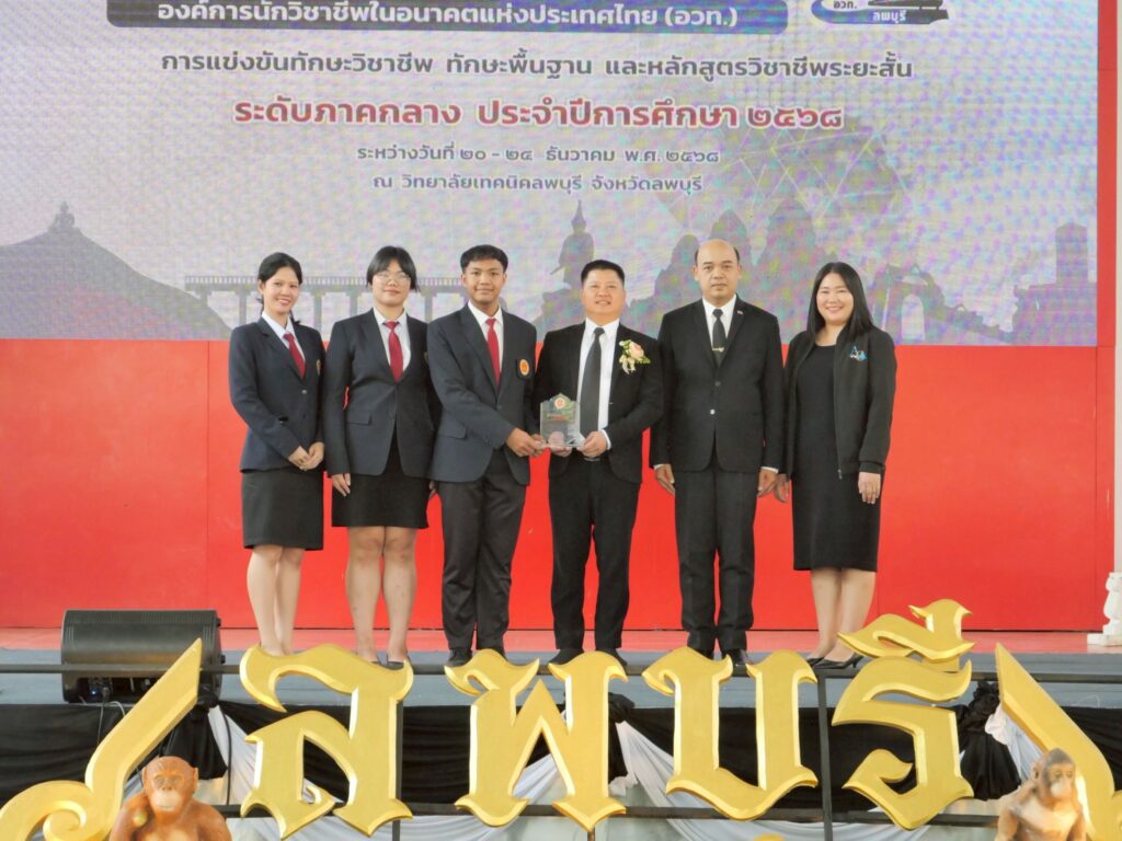 วันพุธที่ 24 ธันวาคม 2568 นายวัชรพงศ์ พิพัฒน์สุริยวงศ์ ศึกษาธิการจังหวัดลพบุรี ประธานพิธีปิดงานประชุมวิชาการองค์การนักวิชาชีพในอนาคตแห่งประเทศไทย (อวท.) การแข่งขันทักษะวิชาชีพ ทักษะพื้นฐาน และหลักสูตรวิชาชีพระยะสั้น ระดับภาคกลาง ครั้งที่ 33 ประจำปีการศึกษา 2568 และมอบโล่รางวัล ณ วิทยาลัยเทคนิคลพบุรี จังหวัดลพบุรี
