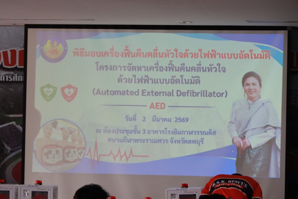 วันจันทร์ที่ 2 มีนาคม 2569 นายวัชรพงศ์ พิพัฒน์สุริยวงศ์ ศึกษาธิการจังหวัดลพบุรี มอบหมายให้ นางเขมกร นิ่มดิษฐ์ รองศึกษาธิการจังหวัดลพบุรี ปฏิบัติหน้าที่แทน ร่วมเป็นเกียรติในพิธีมอบเครื่องฟื้นคืนคลื่นหัวใจด้วยไฟฟ้าแบบอัตโนมัติ (Automated External Defibrillator : AED) โดยมี นางอรพิน จิระพันธุ์วาณิช นายกองค์การบริหารส่วนจังหวัดลพบุรี ประธานในพิธีกล่าวเปิดงานฯ มีหน่วยงานด้านการศึกษาจังหวัดลพบุรี ผู้บริหารโรงเรียน และครูโรงเรียนเอกชน เข้าร่วมพิธีมอบและรับการอบรมการความรู้และการฝึกปฏิบัติ เรื่องการช่วยฟื้นคืนชีพขั้นพื้นฐาน (CPR) และการใช้เครื่องฟื้นคืนคลื่นหัวใจด้วยไฟฟ้าแบบอัตโนมัติ (AED) ณ ห้องประชุม ชั้น 3 อาคารโรงยิมกาฬวรรณดิส สนามกีฬาพระราเมศวรจังหวัดลพบุรี