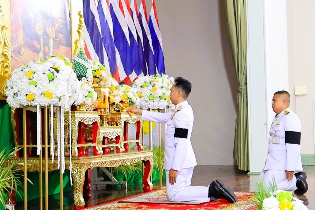 วันจันทร์ที่ 6 เมษายน 2569 เวลา 08.00 น. นายวัชรพงศ์ พิพัฒน์สุริยวงศ์ ศึกษาธิการจังหวัดลพบุรี มอบหมายให้ นางสาวฉัตรวี ลิ้มสกุล นางมณีรัตนา โนนหัวรอ และ นางสาวพิชญ์สินี เลื่อนลอย ร่วมงานพิธีวันพระบาทสมเด็จพระพุทธยอดฟ้าจุฬาโลกมหาราช และวันที่ระลึกมหาจักรีบรมราชวงศ์ ณ หอประชุม 1 ด้านหน้าอาคารคณะวิทยาศาสตร์และเทคโนโลยี มหาวิทยาลัยราชภัฏเทพสตรี โดยมีนายวีรพงศ์ ฤทธิ์รอด ผู้ว่าราชการจังหวัดลพบุรี เป็นประธานในพิธี